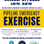 📌UPCOMING PIPELINE EMERGENCY EXCERSISE 📅Monday, October 27th ⏰5pm- 10pm 📍East Goshen Twp Building, Saints Simon & Jude Church/School Parking Lot and Windermere Apartments Chester County Department of Emergency Services will be hosting a full-scale pipeline emergency exercise in East Goshen and Westtown Townships. This is only an exercise and there will be no danger to the public. ℹ For more information, visit chesco.org/des